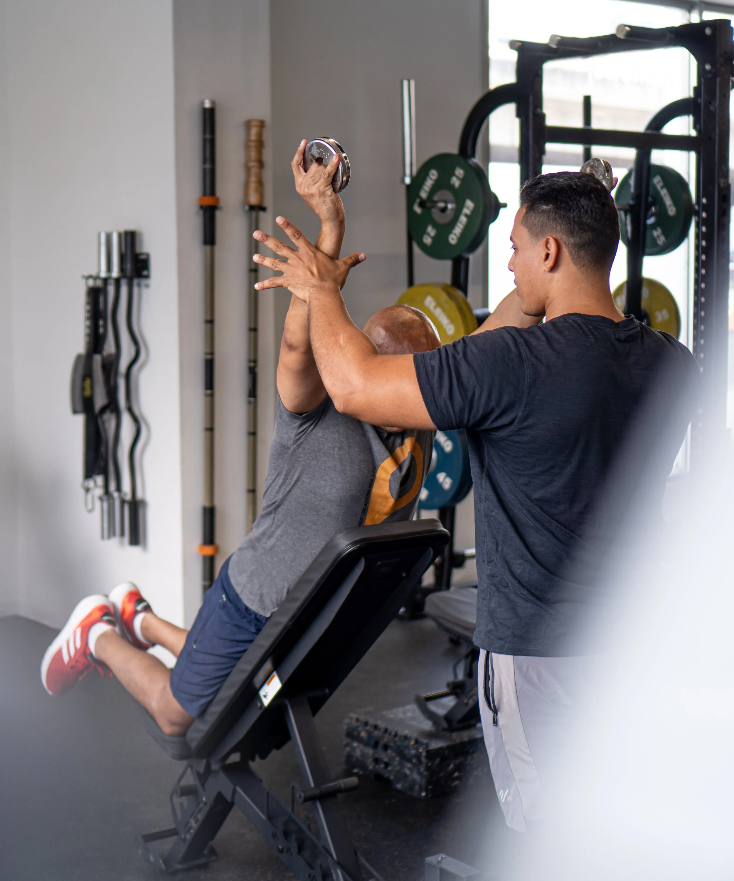 Nuestro programa de entrenamientos personalizados está diseñado a partir de evaluaciones precisas que nos permiten entender tu cuerpo, tus metas y tu estilo de vida. Cada sesión es planificada de manera estratégica y eficiente para impulsar tu fuerza, optimizar tu salud y elevar tu bienestar.
